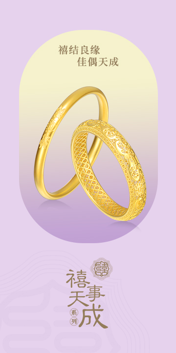 以东方婚嫁囍文化为创作灵感,在传承千年婚俗文化精髓的同时,古法工艺錾刻浪漫精美纹饰,寓意百年好合、爱情美满。